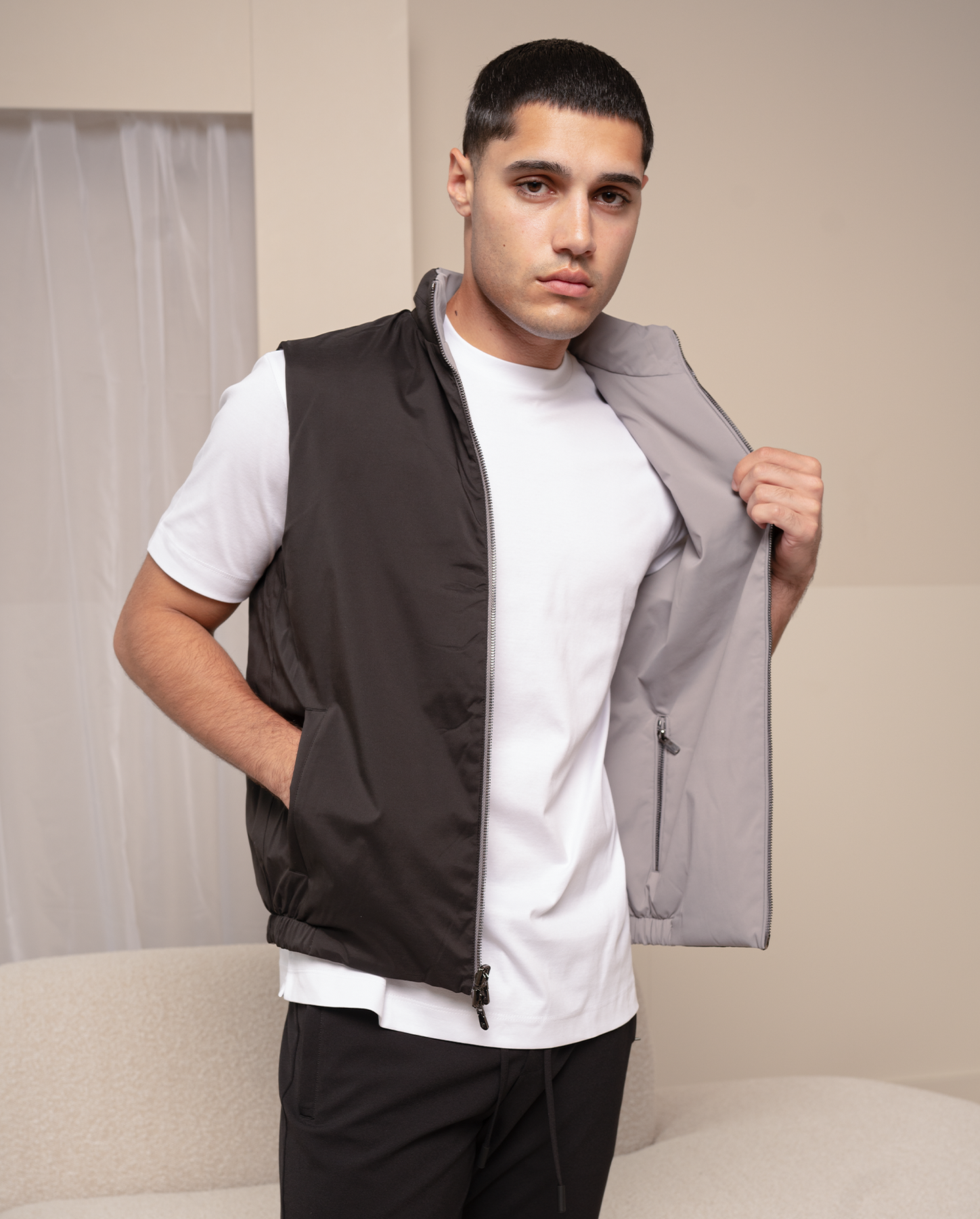 VÄNDBAR VÄST - SVART/GRÅ